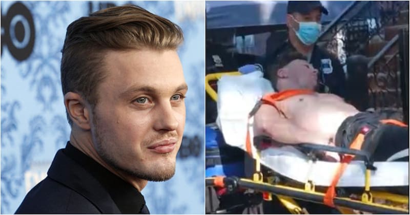 El intérprete de la serie “Hannibal” se veía aturdido, mirando al cielo, girando la cabeza de un lado a otro mientras se acostaba en la camilla.