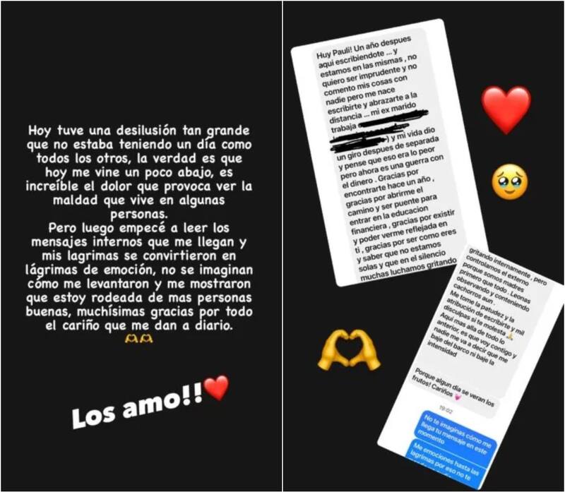 Momentos después, según detalló el portal, Paula compartió un mensaje que le envió una seguidora que le hablaba sobre los problemas que enfrentaba tras su separación. La usuaria le comentó que “pensé que eso era lo peor, pero ahora es una guerra con el dinero”.