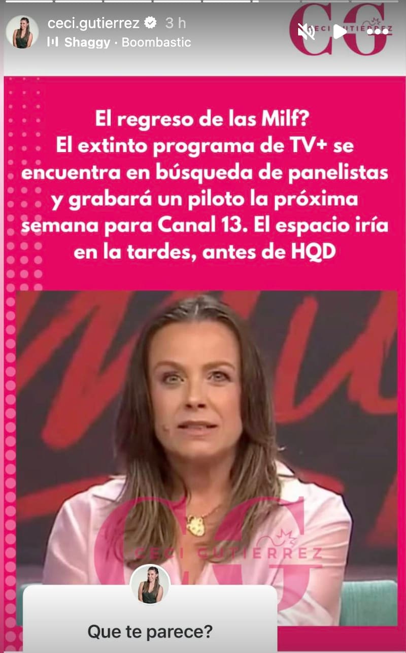 "El regreso de las MILF? El extinto programa de TV+ se encuentra en búsqueda de panelistas y grabará un piloto la próxima semana para Canal 13“, escribió la periodista en su cuenta de Instagram.
