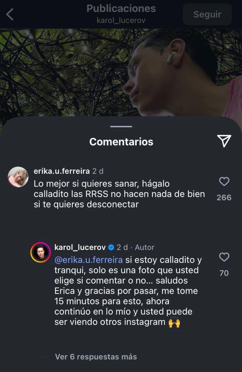 La publicación de Karol Lucero no pasó desapercibida en la web y desató una ola de comentarios de parte de sus seguidores. Algunos le entregaron consejos en medio de la polémica, mientras que otros fueron más críticos con el exYingo.