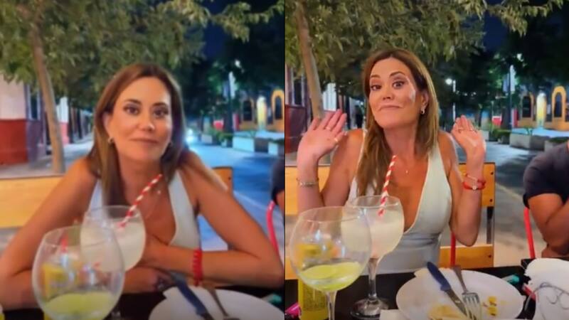 La aludida se para de la mesa y comenzó a posar para la cámara. “De nuevo, de nuevo, que no salga el vituperio“, dice.