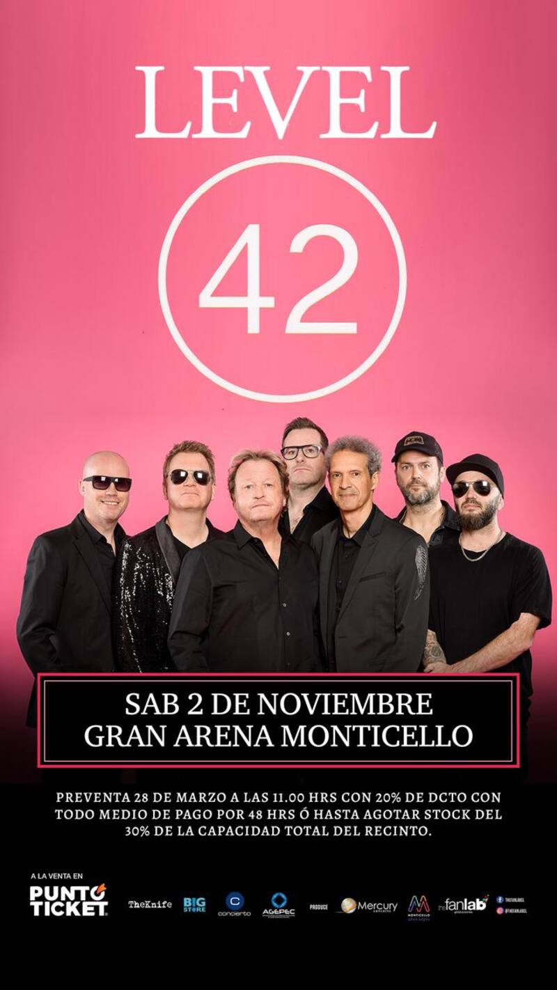 Level 42, ícono del funk-pop de los ochentas y noventas, regresa a Chile —ocho años después de su primer concierto en el país— para presentarse en Gran Arena Monticello el próximo sábado 2 de noviembre a las 21:00 horas.