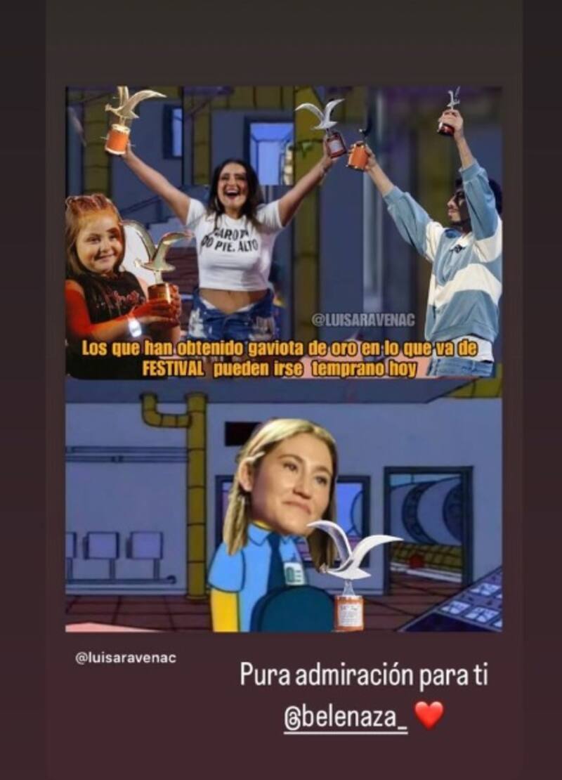 En la misma red social, Belenaza compartió un meme sobre su participación en el Festival. Además, respondió la pregunta interactiva de un medio de comunicación.