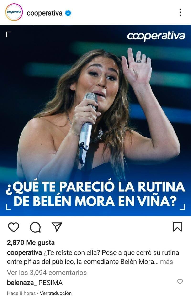 Luego de la pifias recibidas en la Quinta Vergara, la comediante Belén Mora reaccionó con humor.