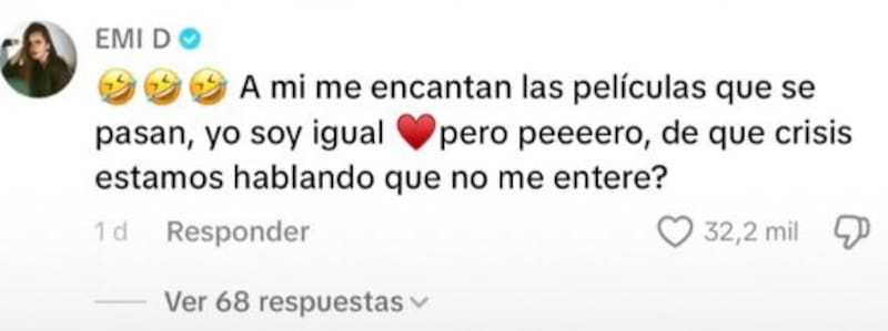 Ahora bien, fue la propia Emilia quien decidió desmentir al rostro de Primer Plano, y mencionó a través de un comentario en TikTok: “A mí me encantan las películas que se pasan”.