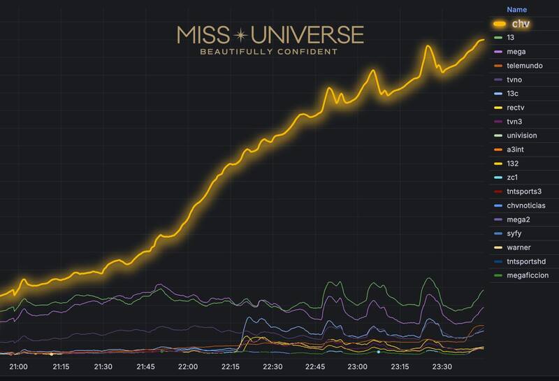 Lo anterior consolidó a CHV como el canal más visto en el país durante la transmisión del certamen dentro de la plataforma la noche del sábado 16 de noviembre entre las 22:00 y 00:30 hrs.