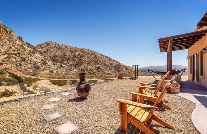 Entre otras características, se trata de una propiedad de 230 metros cuadrados, con tres habitaciones y garaje para tres autos. Cuenta, además, con una gran cocina con planta abierta, salas de estar, comedor con techos abovedados, una chimenea, ventanas de piso al techo con vista al desierto. Y tal vez como uno de sus elementos más distintivos, tiene un puente de 34 metros que sus residentes pueden usar para cruzar un arroyo seco.