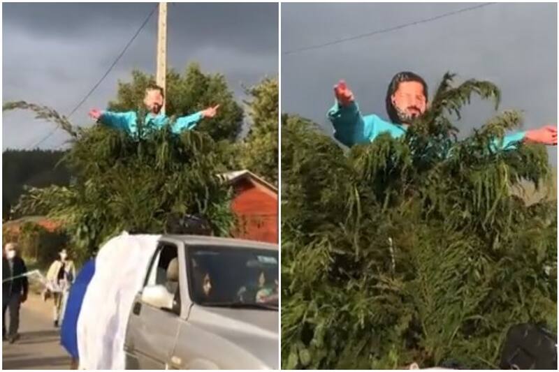 El suceso fue llevado a cabo en la comuna de Galvarino en La Araucanía y además de transportar la figura del candidato presidencial, los adherentes marcharon al son de la viralizada “Ranchera de Boric”, causando gracia en las redes sociales.