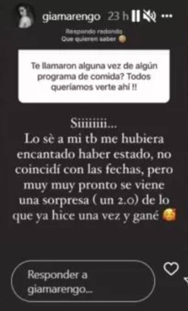 “Siiii… Lo sé, a mí también me hubiera encantado haber estado, no coincidí con las fechas, pero muy muy pronto se viene una sorpresa (un 2.0) de lo que ya hice una vez y gané”, detalló sin revelar a qué canal se integrará o más detalles de sus proyectos.