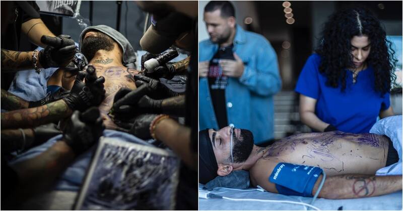 El artista mostró el complicado proceso de marcar su piel con este recuerdo. Estuvo cuatro horas con anestesia general durante dos días, para estampar el dibujo en su torso.