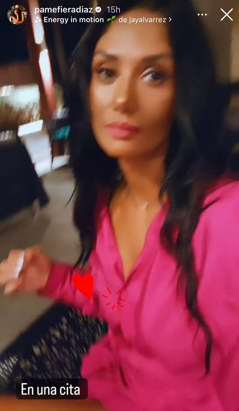 Pero eso no es todo. Además, la Pame compartió otra historia a sus redes sociales donde apuntó a un mensaje más directo aún. “En una cita”, posteó junto a una storie en la que luce un coqueto vestido color rosa y aparece de donde la voz del animador de Chilevisión.