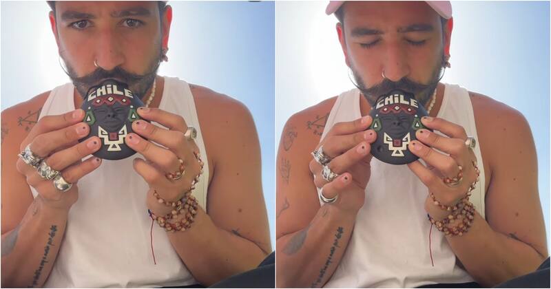 “Me voy enamorado de Chile”, escribió en su cuenta de Instagram junto a varias fotos en el país y un video tocando una ocarina con motivo nacional.