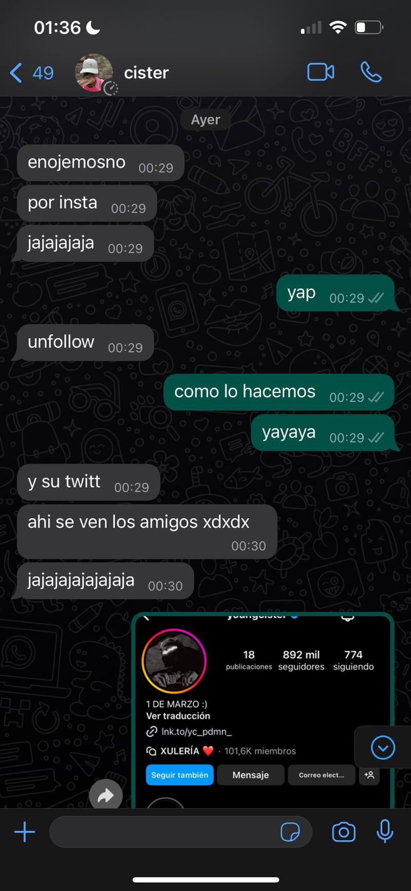 Pero no fue todo, el intérprete de Minnie <3 destapó, a través de X, cómo habían inventado el dramón con el Joven Ciss: él mismo hizo pública una conversación de Whatsapp que devela la artimaña.