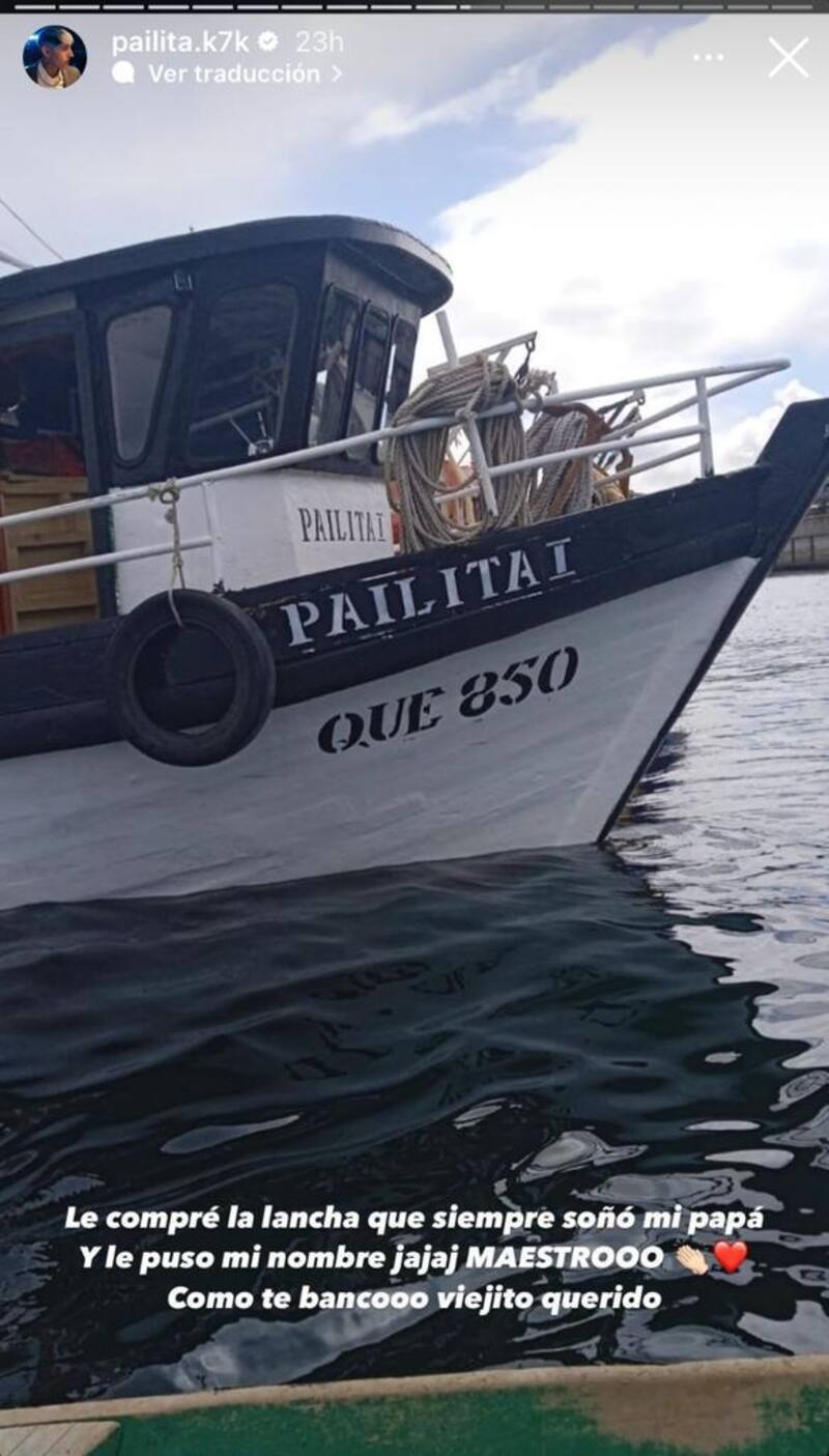 “Le compré la lancha que siempre soñó mi papá”, comenzó diciendo a través de una storie que compartió en Instagram.