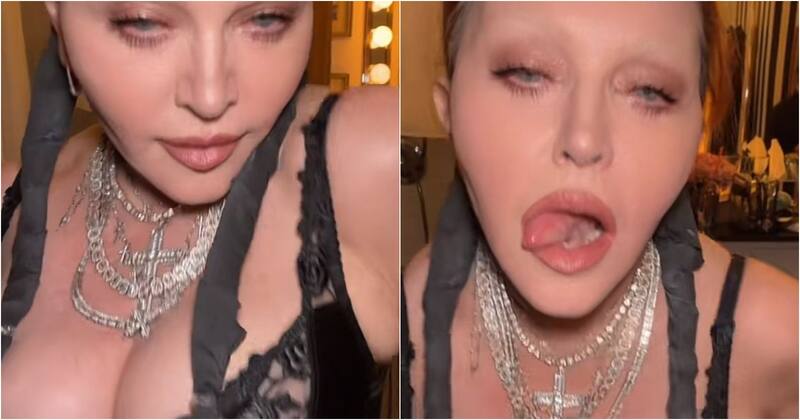 Con las cejas decoloradas, mirando fijamente a la cámara y vestida con un sensual conjunto de lencería de encaje negro, así luce Madonna en uno de sus últimos videos de TikTok.