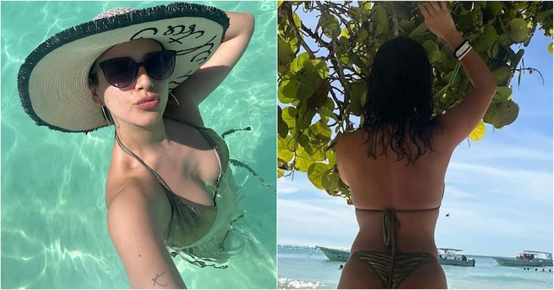 La bella actriz y cantante la rompió con sensuales fotos pasándolo chancho en República Dominicana.