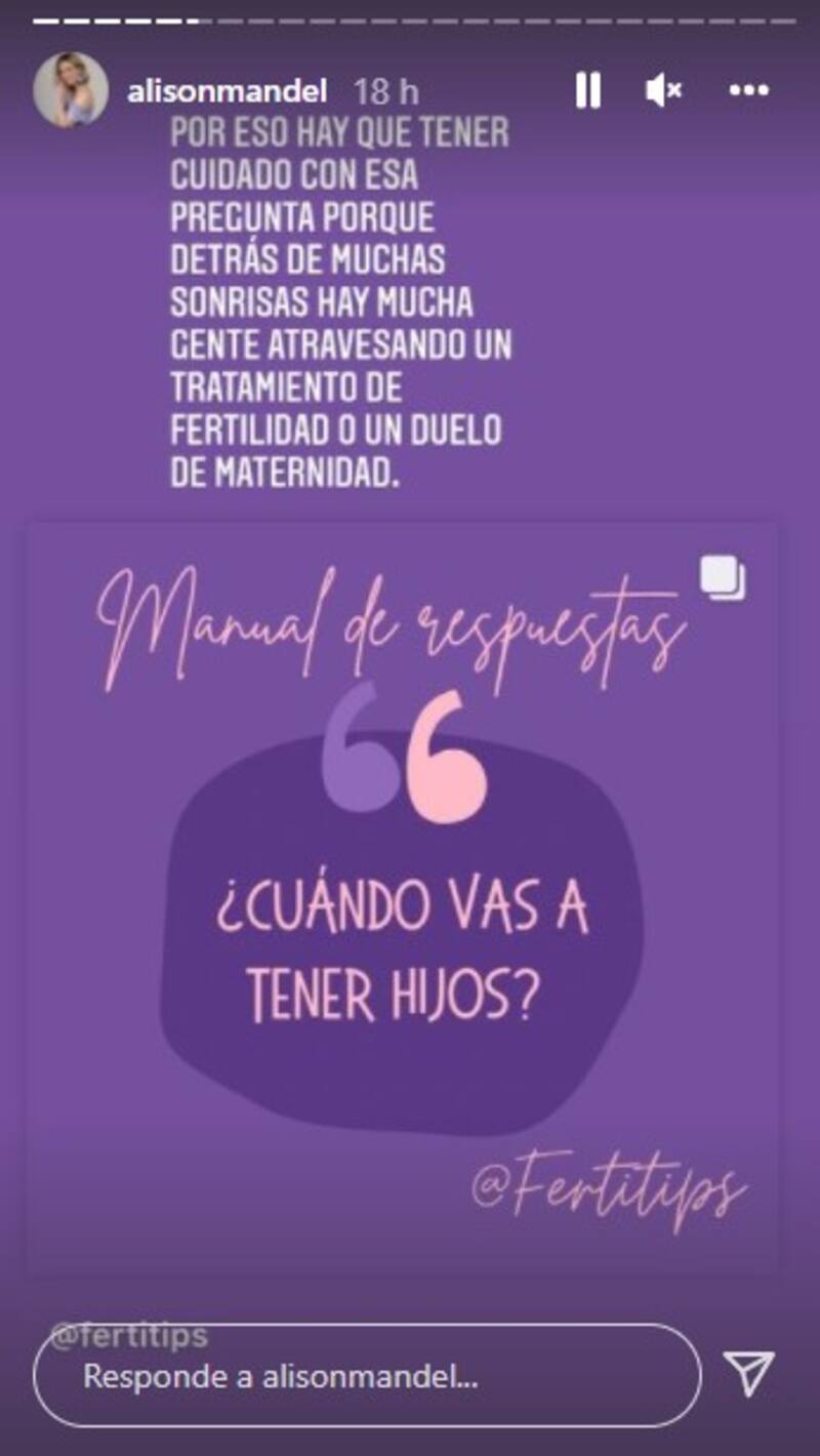“Por eso hay que tener cuidado con esa pregunta porque detrás de muchas sonrisas hay mucha gente atravesando un tratamiento de fertilidad o un duelo de maternidad”, agregó, sorprendiendo con su relato.