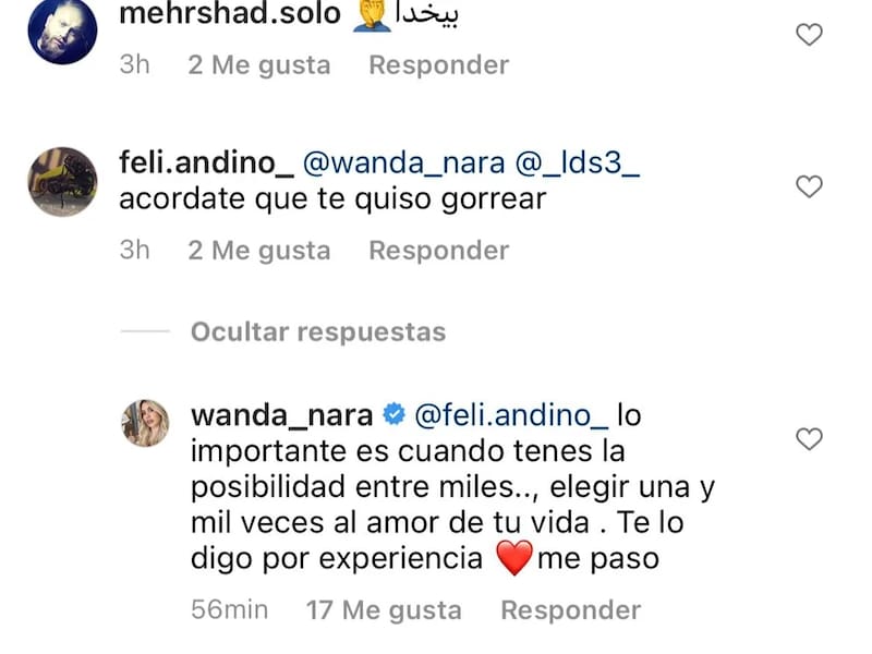 Pero no fue el único, ese era apenas el comienzo: “Lo importante es cuando tenés la posibilidad entre miles... elegir una y mil veces al amor de tu vida. Te lo digo por experiencia, me pasó”, le respondió a otro que le recordó que el jugador del PSG “te quiso gorrear”. También se definió como “tóxica”, cuando le dijeron que “volviste más veces que yo con mi ex”.
