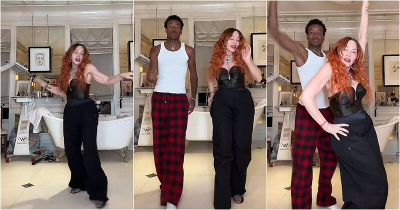 Madre e hijo ocuparon el baño de la casa de la intérprete como pista de baile, lugar donde Madonna suele grabar sus tiktoks, y les bastaron unos segundos para simplemente romperla en la web.