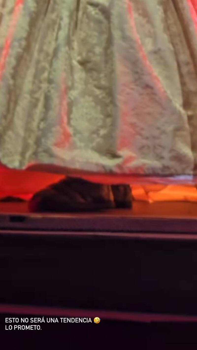 Un registro que se viralizó en redes sociales captó a la joven cantando en el escenario, luciendo un elegante vestido, pero hubo un particular detalle que llamó la atención: salió con pantuflas.