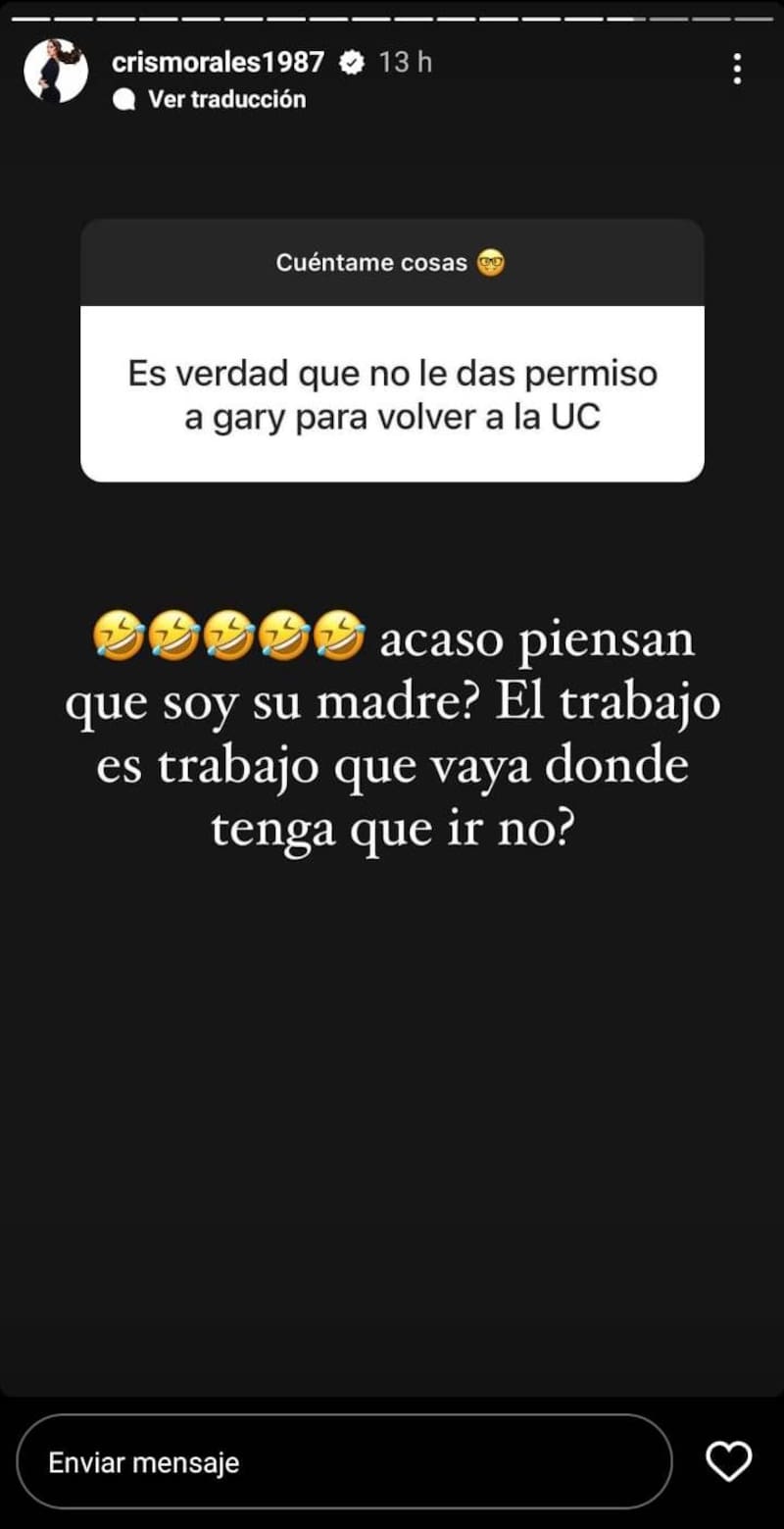 Otro seguidor le consultó si era verdad que ella no le daba permiso a Gary Medel para volver y jugar en Universidad Católica. “¿Acaso piensan que soy su madre? El trabajo es trabajo. Que vaya donde tenga que ir, ¿no?”, agregó sorprendiendo con sus dichos.