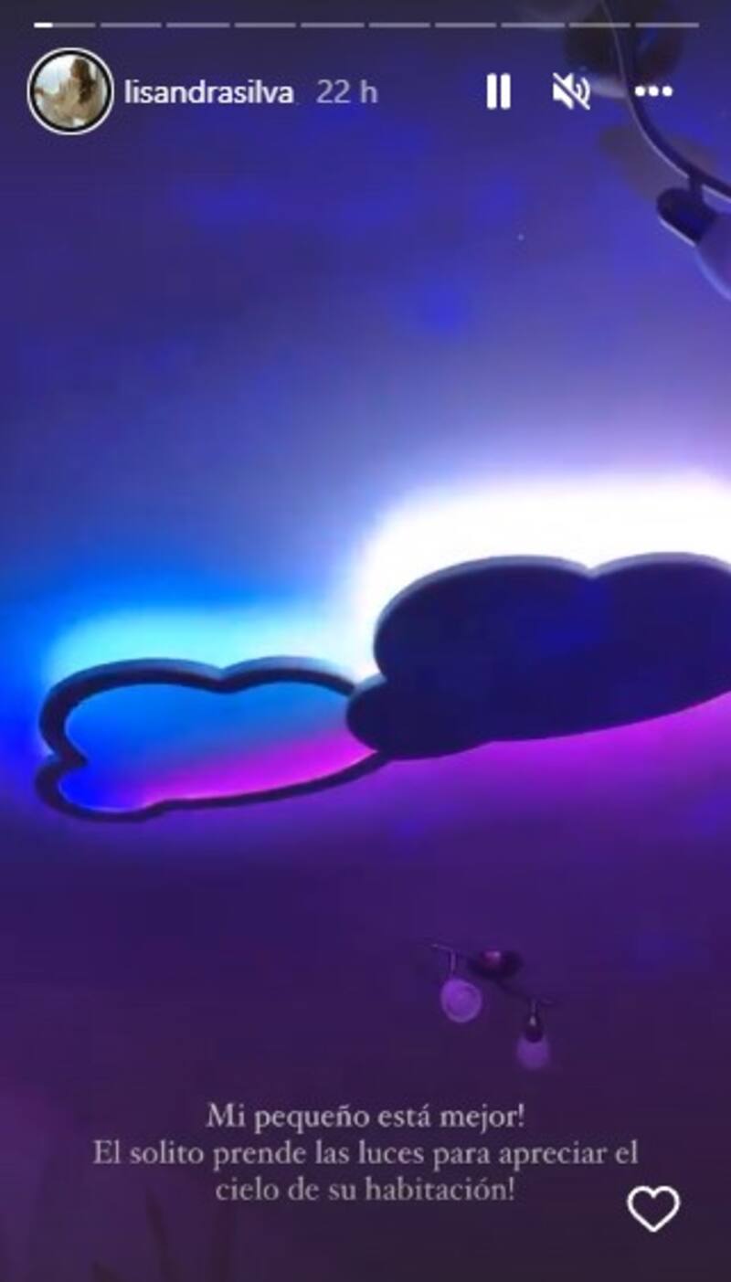 “Mi pequeño está mejor! Él solito prende las luces para apreciar el cielo de su habitación”, detalló Lisandra Silva en sus historias recientemente afirmando que el pequeño superó el malestar.