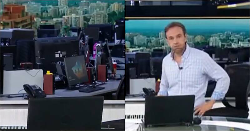 El canal decidió volver al aire de los comerciales cuando no había nadie en el estudio, lo que hizo el conductor del noticiero reclamaba mientras volvía a ponerse en su lugar.