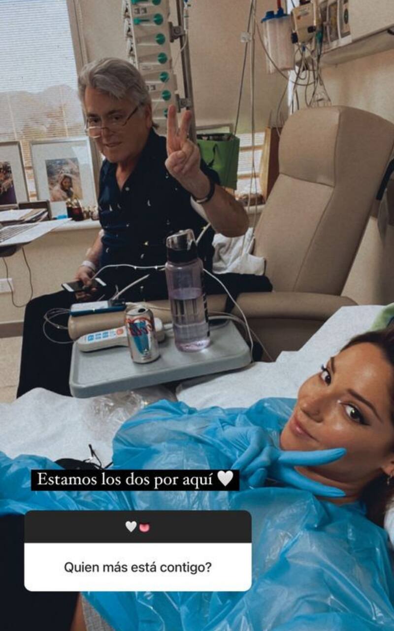 “Se llevaron a mi papá a caminar así que pude sacarme la mascarilla un ratito”, detalló en sus historias la influencer, mostrando la “bata” que le pasaron para poder ingresar al recinto de salud.
