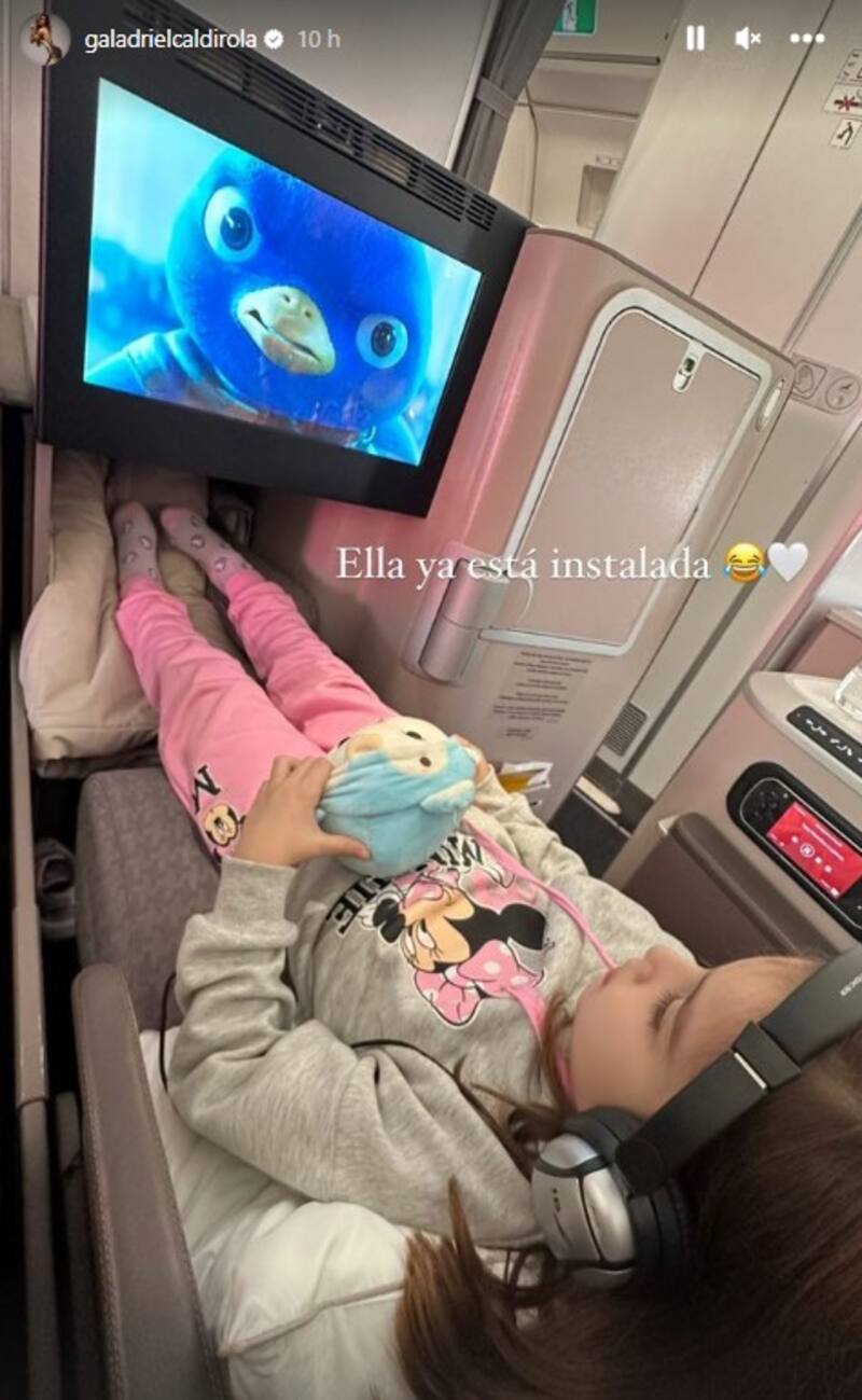 A través de sus historias de Instagram, Galadriel compartió imágenes del vuelo que les lleva al viejo continente y aprovechó de contestar a las palabras de su ex esposo.
