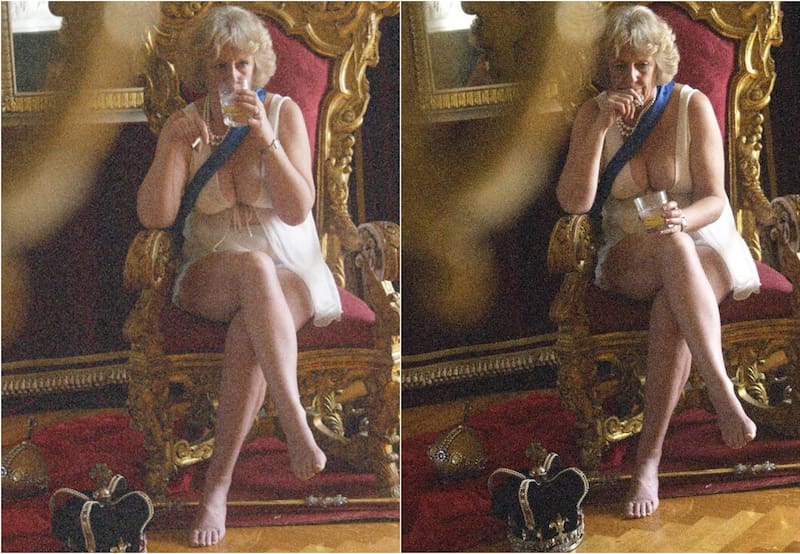 Camilla Parker en ropa interior, bebiendo, fumando y jugando con una corona. Así luce la actual reina consorte de Inglaterra en una serie de imágenes bastante íntimas.