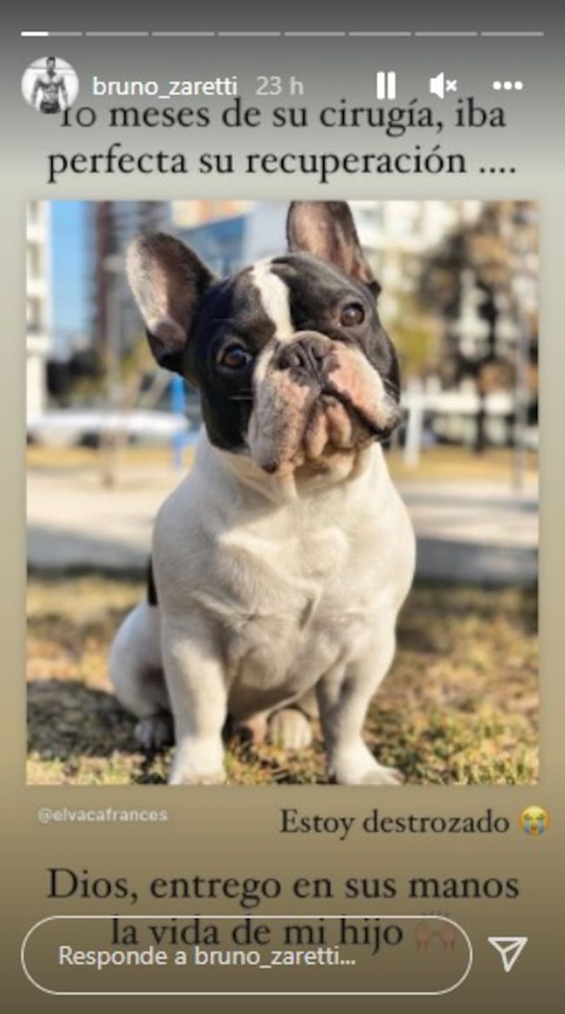 A través de sus historias de Instagram el ex Axé Bahía compartió su pena luego de que su mascota volviera a enfrentar un difícil estado de salud tras ser operado de urgencia hace 10 meses atrás.