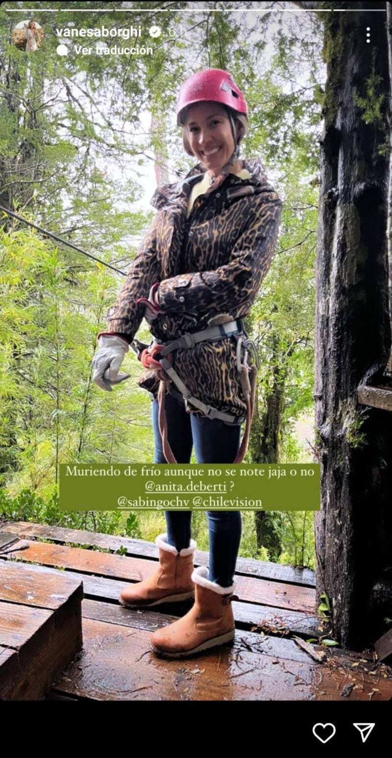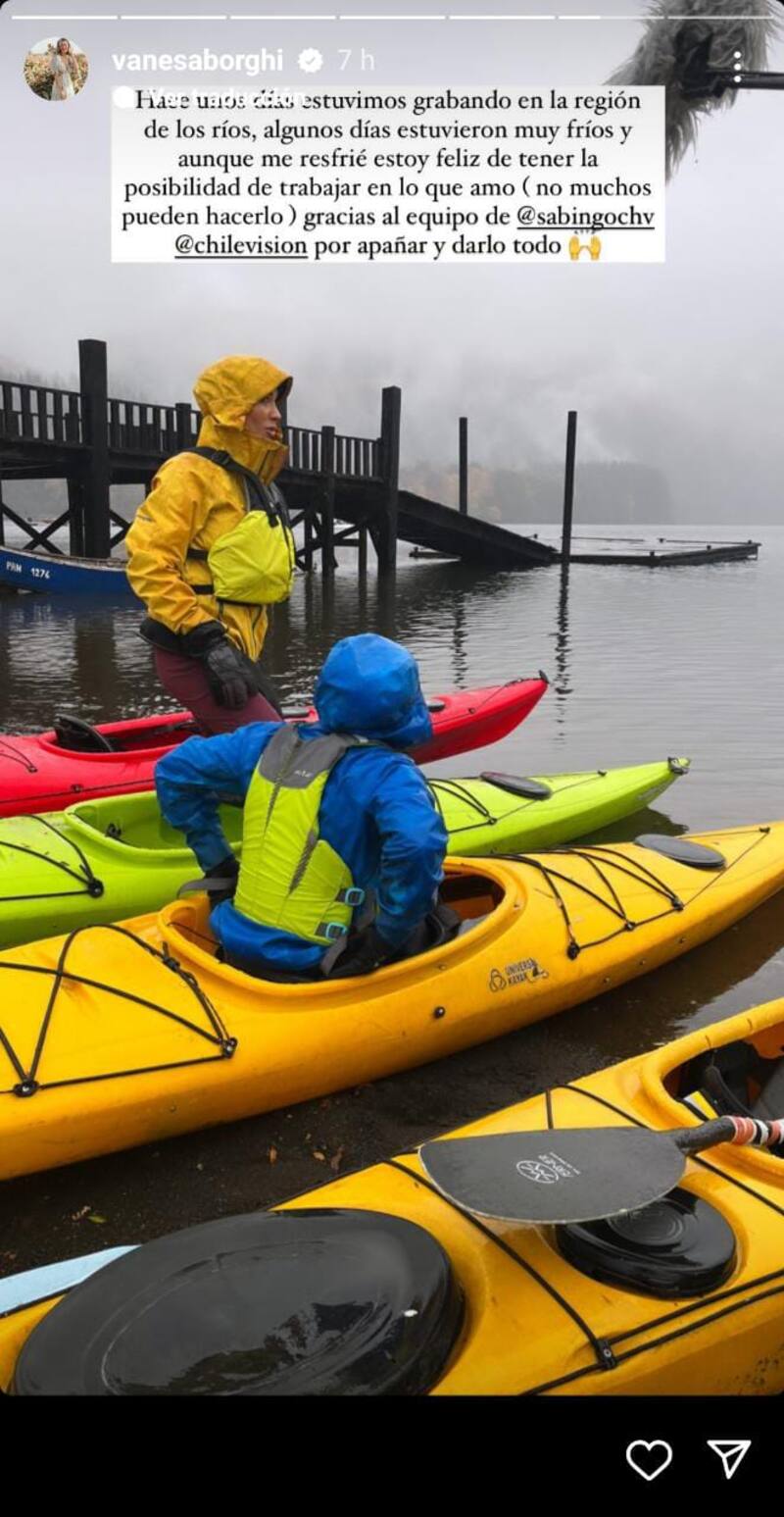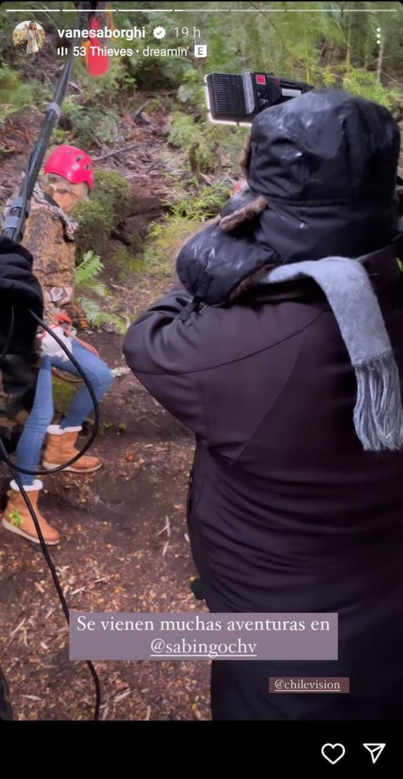 “Se vienen muchas aventuras en @SabingoCHV”, detalló mientras caminaba en la naturaleza. “Hace unos días estuvimos grabando en la región de Los Ríos, algunos días estuvieron muy fríos y aunque me resfrié, estoy feliz de tener la posibilidad de trabajar en lo que amo (no muchos pueden hacerlo)”, detalló en otro registro mientras posaba en una lancha.