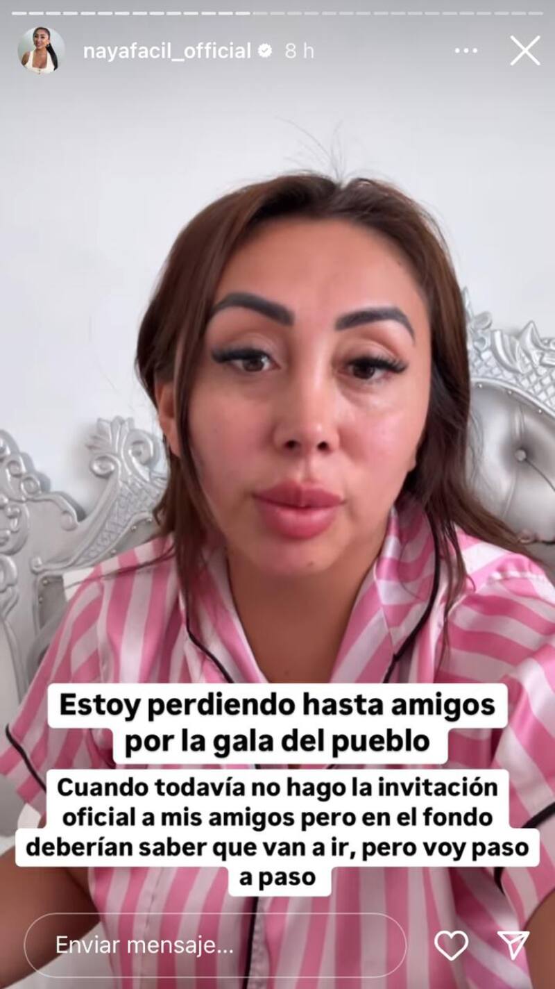 Más adelante, Naya contó que la molestia de la persona sería por no haber recibido recientemente una invitación para su evento. “Si esta persona se molestó porque todavía no la invito a la Gala del Pueblo, le informó que a ninguno de mis amigos los he invitado, porque estamos pensando en hacer algo entrete (...) Que lata si es así, si bien subí a uno que otro amigo, pero es porque ellos son influencers aparte de ser mis amigos”, explicó en el video.