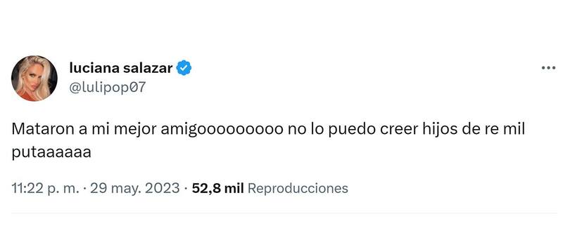 “Mataron a mi mejor amigo, no lo puedo creer hijos de re mil pu…”, descargó en un posteo que compartió en la red social, pero que al rato decidió borrar.