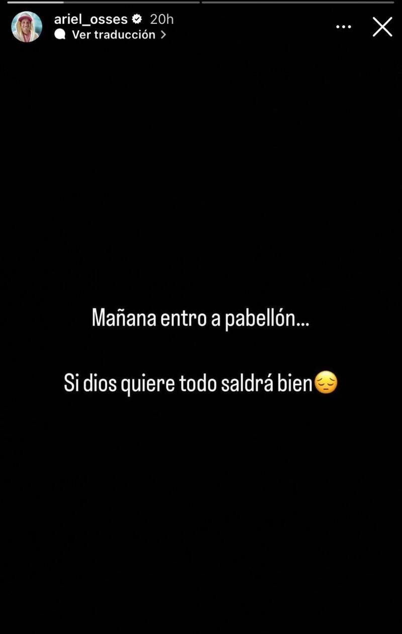 “Mañana entro a pabellón. Si Dios quiere todo saldrá bien”, comentó en una storie.