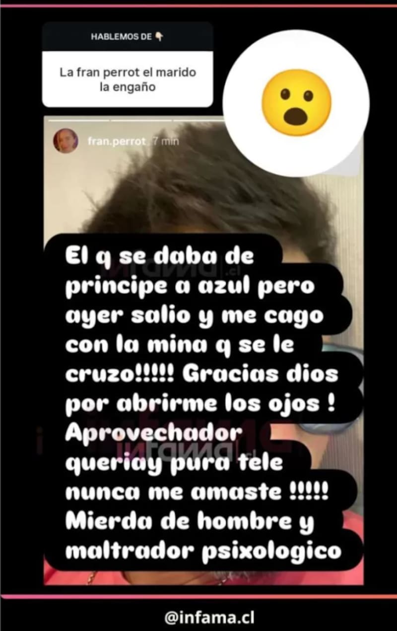 “El que se daba de príncipe azul, pero ayer salió y me cagó con la mina que se le cruzó”, sentenció en el mensaje.