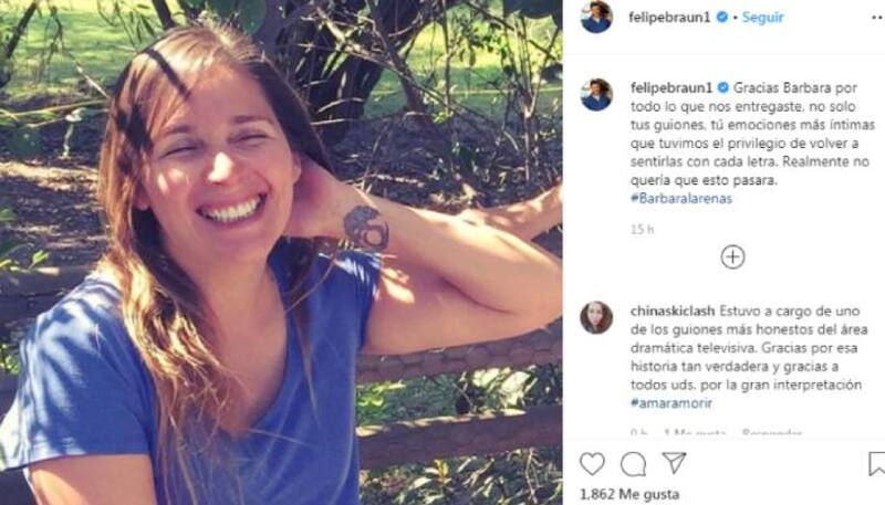"Gracias Bárbara por todo lo que nos entregaste, no solo tus guiones, tú emociones más íntimas que tuvimos el privilegio de volver a sentirlas con cada letra. Realmente no quería que esto pasara", escribió Braun junto a una fotografía que acumula más de 1.800 me gustas y 70 comentarios en la red social.
