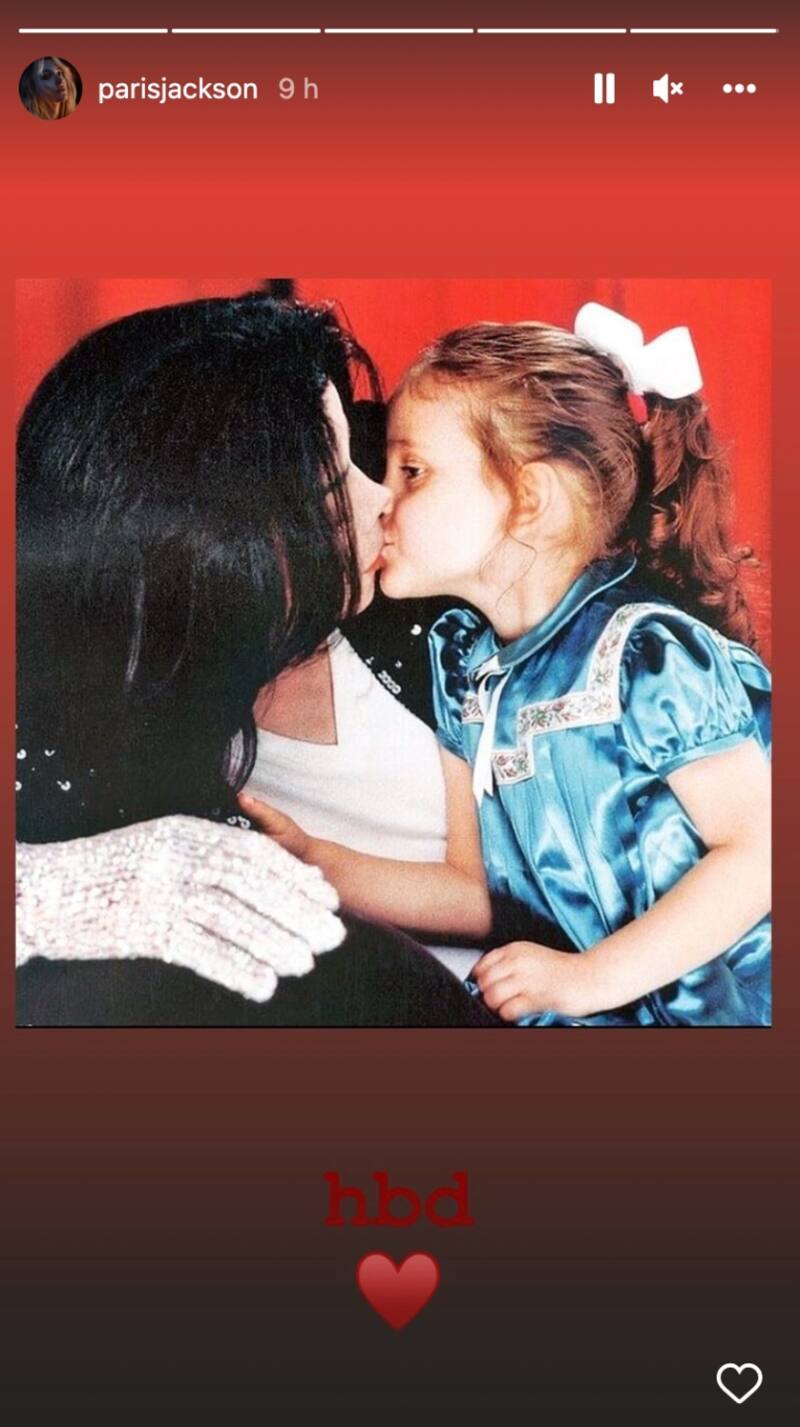 Por su parte, Paris Jackson subió una foto junto al intérprete de “Thriller” a historias, donde solo se limitó a escribir “hbd” (Feliz cumpleaños).