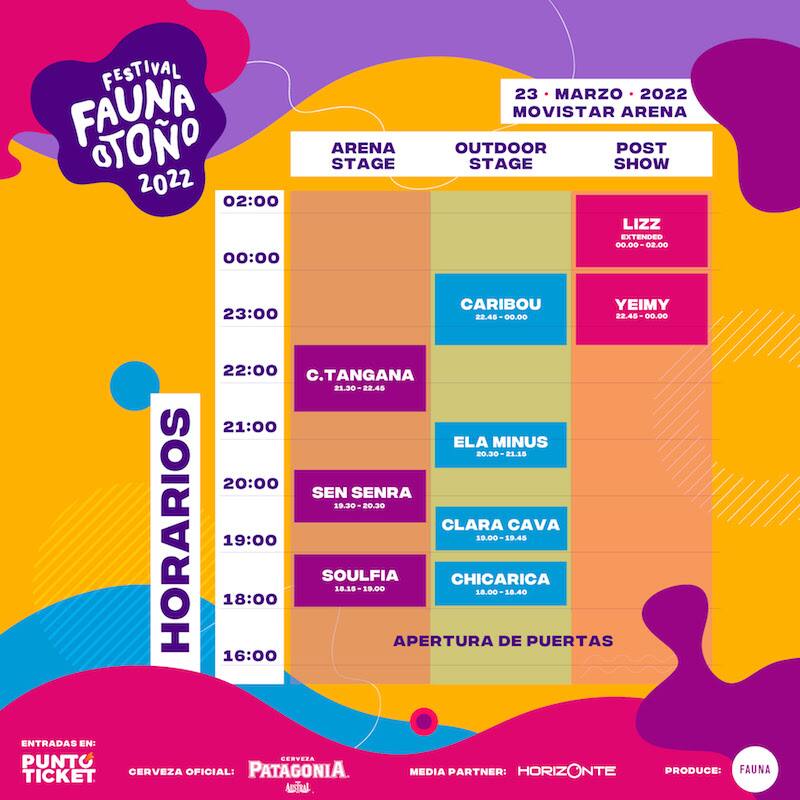 El Festival Fauna Otoño acaba de confirmar los horarios en que se presentarán los artistas de su parrilla programática. La cuarta edición del evento se realizará el próximo 23 de marzo en el Movistar Arena y tiene interesantes invitados internacionales.
