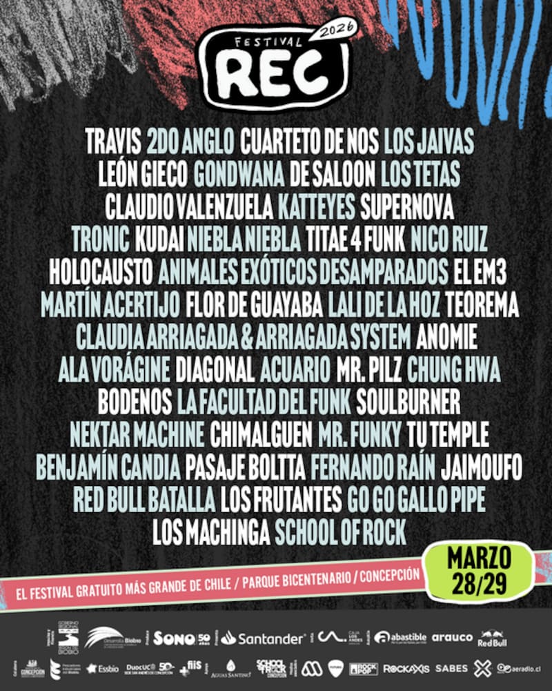 En lo artístico, REC 2026 reunirá a 45 bandas y solistas, con una parrilla que cruza rock, pop, música urbana y propuestas alternativas de distintos países.