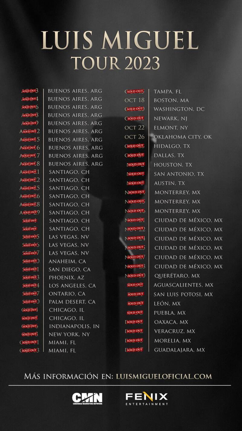 Este “Luis Miguel Tour 2023″ será una nueva posibilidad para disfrutar del gran repertorio de Micky, con hits como “Sabor a mí”, “La chica del bikini azul”, “La incondicional”, entre otras.