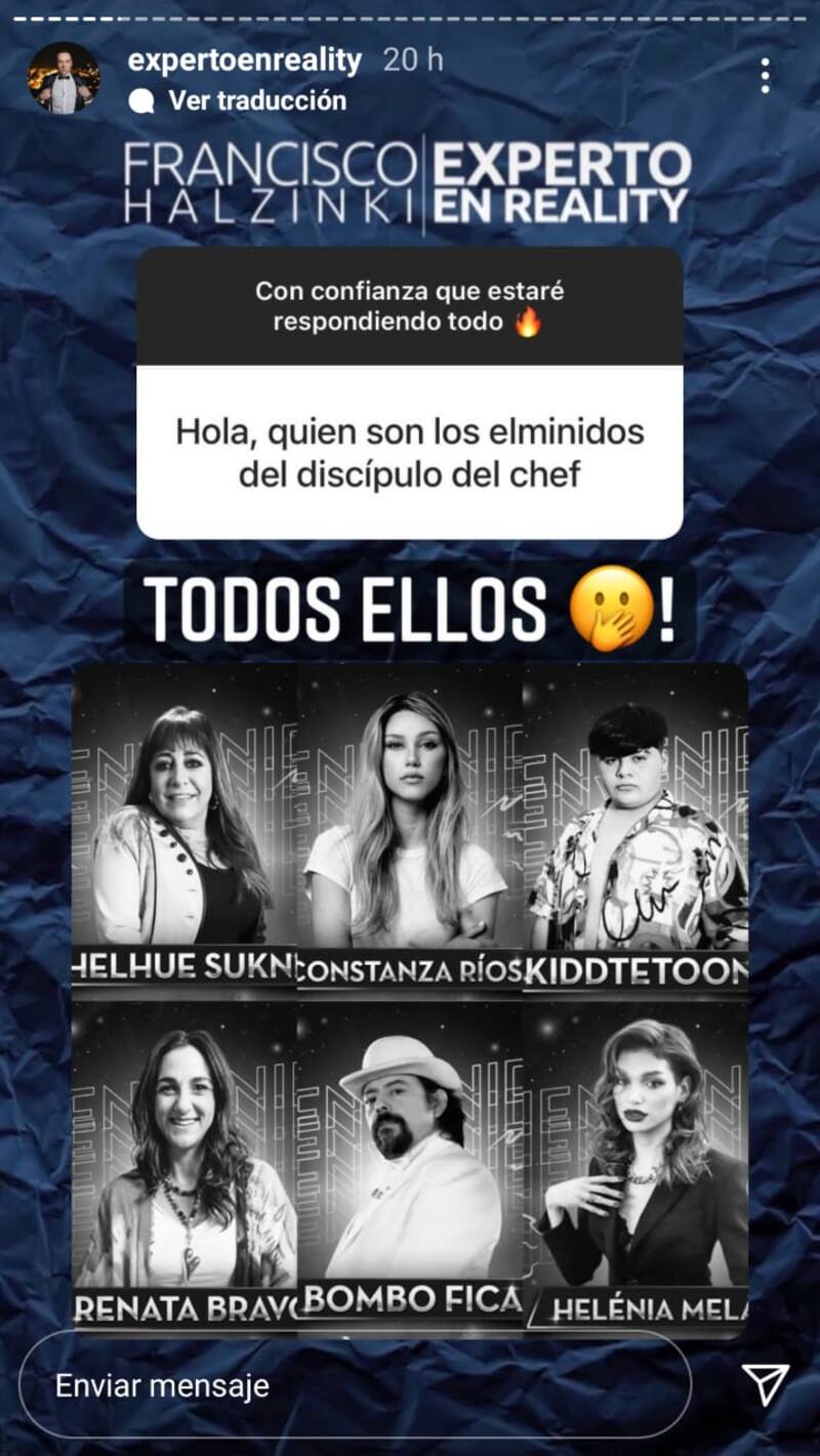 No es un secreto que a lo largo del programa irán desapareciendo concursantes quienes serán eliminados por su desempeño en la cocina. Información que se ha detallado en la web y no solo eso, ya que este sábado el comunicador Francisco Halzinki conocido como "ExpertoEnReality" reveló dos nombres de nuevos participantes.