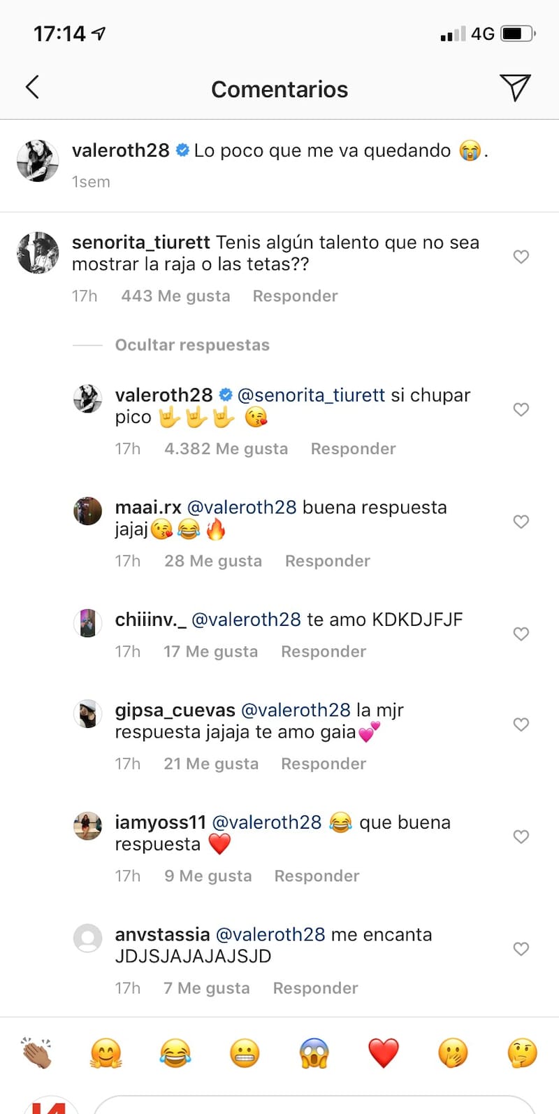 La fina respuesta de Vale Roth a usuaria de Instagram