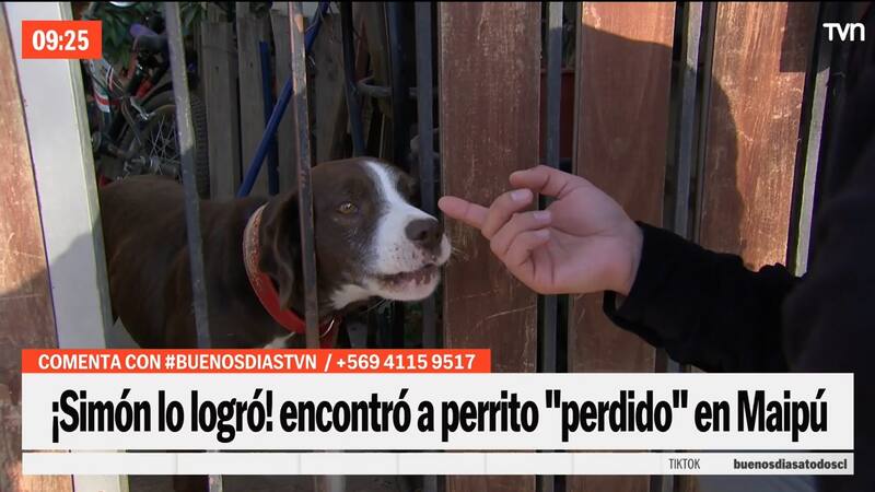 Este lunes, el periodista Simón Oliveros del matinal Buenos Días a Todos se trasladó hasta la comuna y reveló el feliz desenlace de la historia del perrito: se reencontró con su familia.