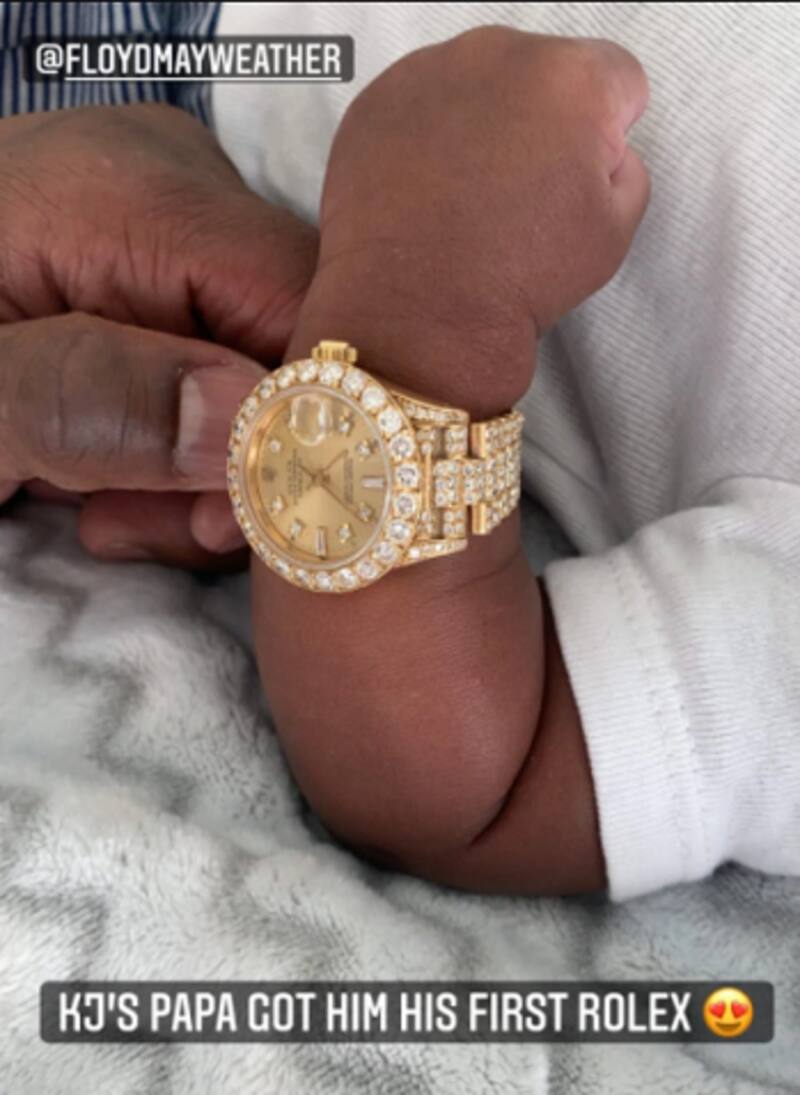 "Le consiguió su primer Rolex", escribió en sus redes sociales Iyanna Mayweather, la madre del recién nacido e hija del deportista.