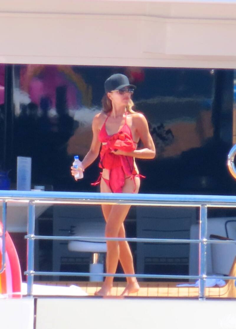 Acompañada de una botella de agua, se paseó por la cubierta de la embarcación de lujo mostrándose de aquí para allá.