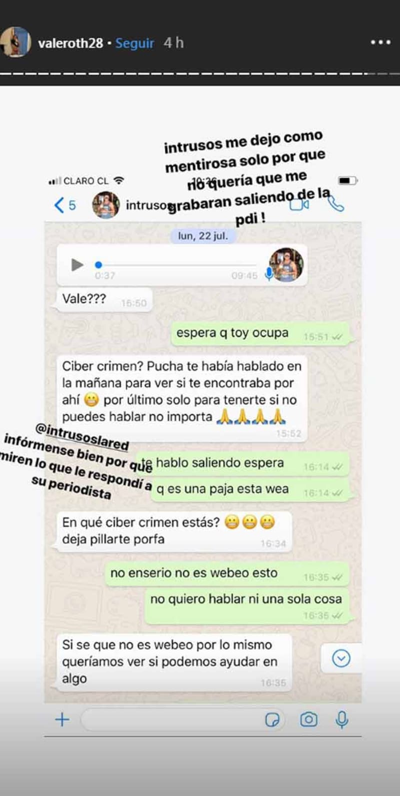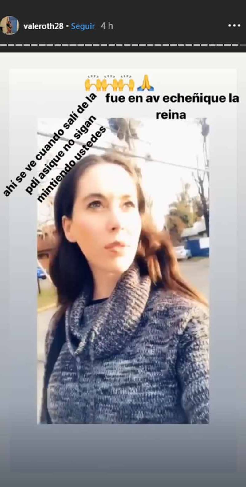 Luego, en las mismas historias de su Instagram, Valentina posteó que el programa "Intrusos me dejó como mentirosa sólo porque no quería que me grabaran saliendo de la PDI".
