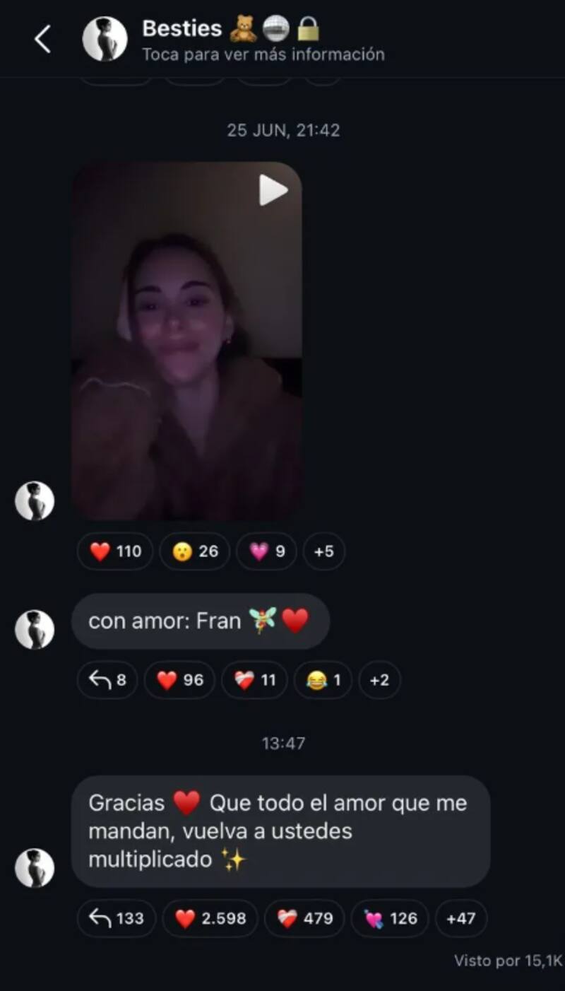 Otra persona que también se refirió al estado actual de Fran, fue su madre, Cecilia Virgilio, quien ya había publicado en redes sociales un par de referencias en torno a la situación que vive su hija.