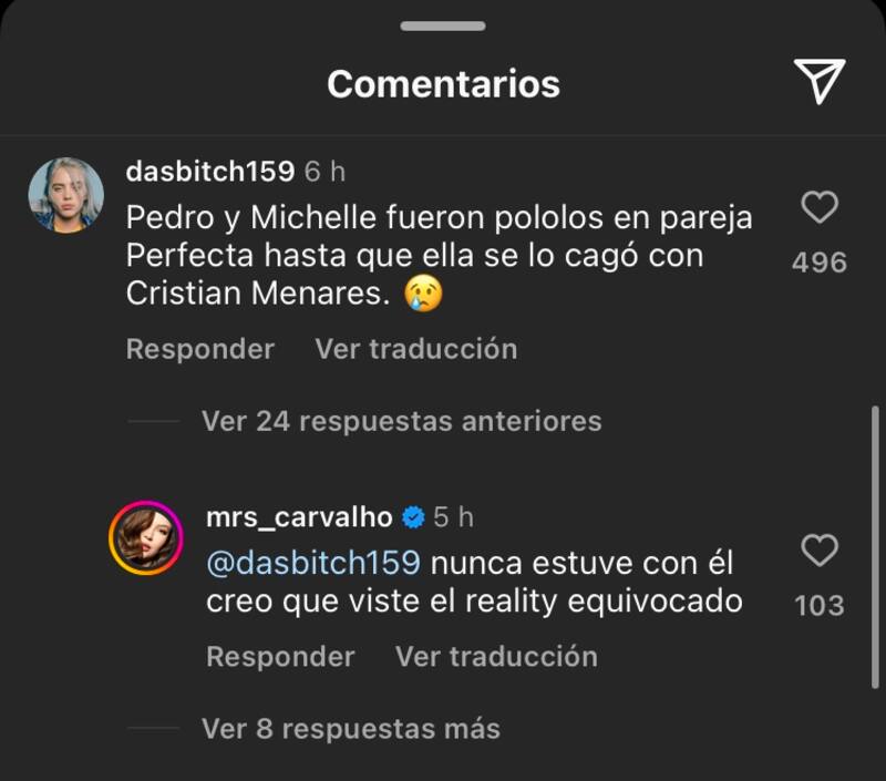 Carvalho no dejó pasar el comentario y le respondió. “Nunca estuve con él, creo que viste el reality equivocado”, aseguró la influencer.