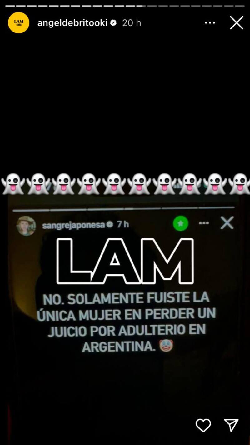 “No, solamente fuiste la única mujer en perder un juicio por adulterio en Argentina”, habría escrito China, reflotando viejas tensiones entre ambas.